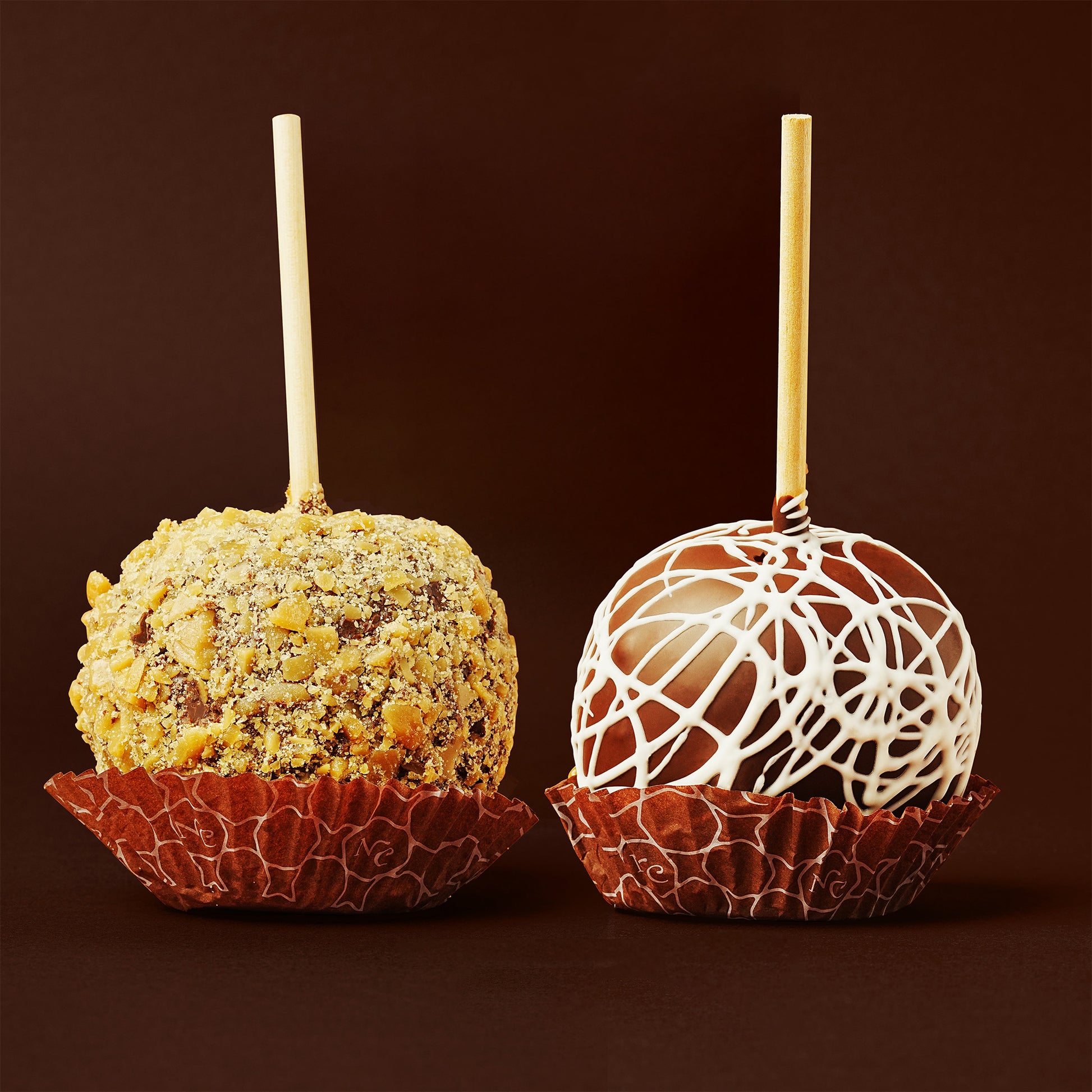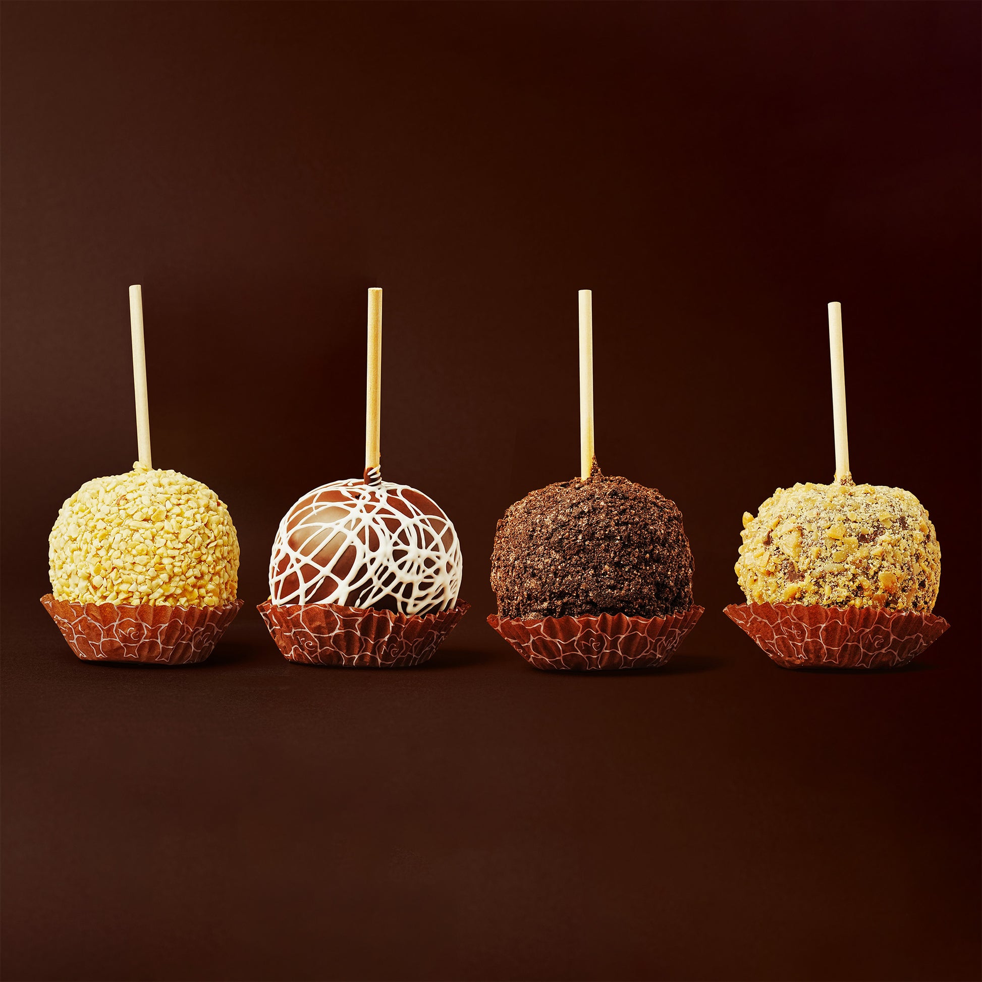 Sweet. Tart. A̶ ̶l̶i̶t̶t̶l̶e̶ over the top.These aren’t the caramel apples from the fall fair. All four of these apples are dipped in slow-cooked caramel that coats. Each piece is hand-crafted and completely unique, with toppings and flavors that make a statement.