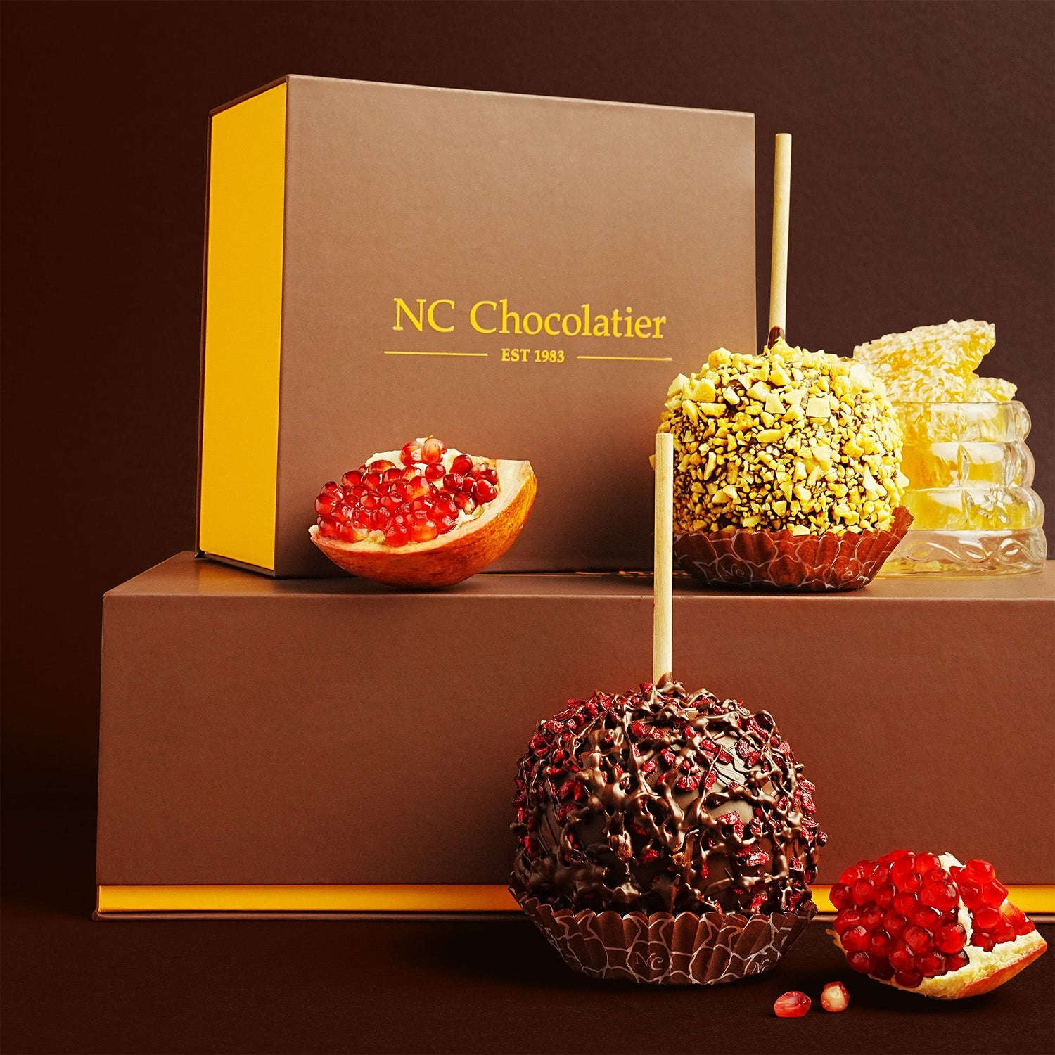 Sweet. Tart. A̶ ̶l̶i̶t̶t̶l̶e̶ over the top.These aren’t the caramel apples from the fall fair. All four of these apples are dipped in slow-cooked caramel that coats. Each piece is hand-crafted and completely unique, with toppings and flavors that make a statement.