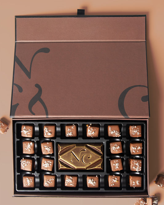 All Signature Milk Chocolate Confections— milk chocolate toffee, sea salt caramels, peppermint patties, and nut clusters!