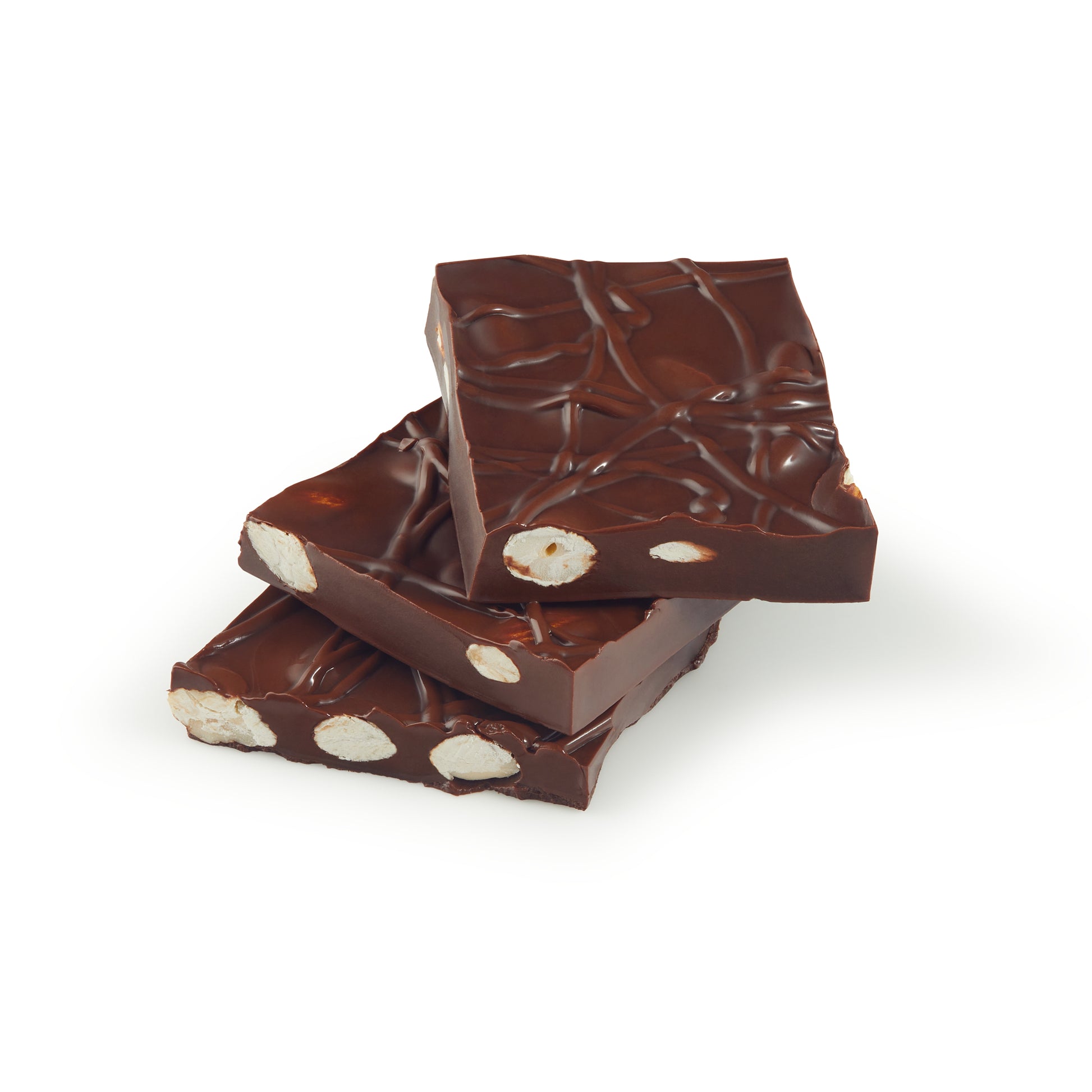 Roasted almonds folded into smooth Belgian chocolate, then snapped into rustic shards for a timeless balance of crunch and cocoa.