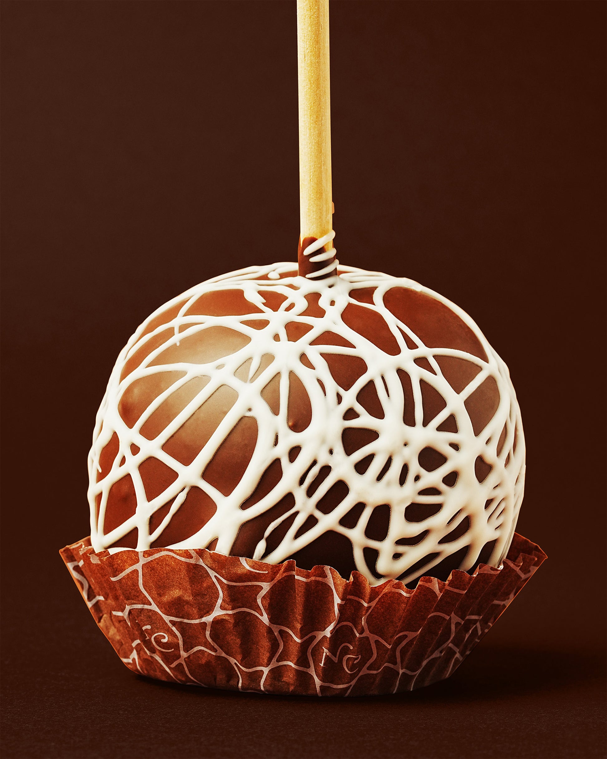Crisp granny smith under golden caramel, dark Belgian chocolate coating, and white-chocolate swirls. Silky chocolate meets, a fresh fruity bite. Slice, enjoy, repeat.