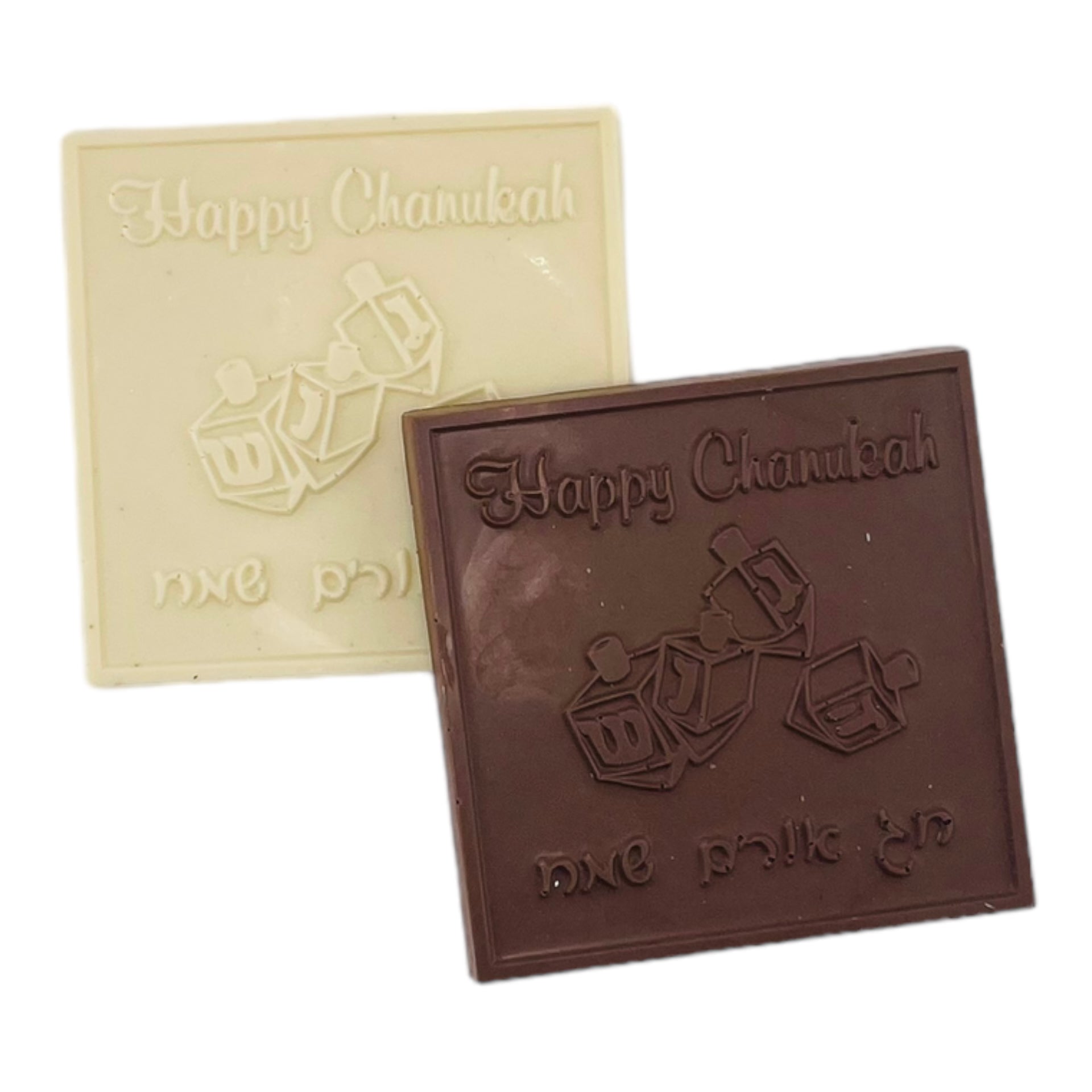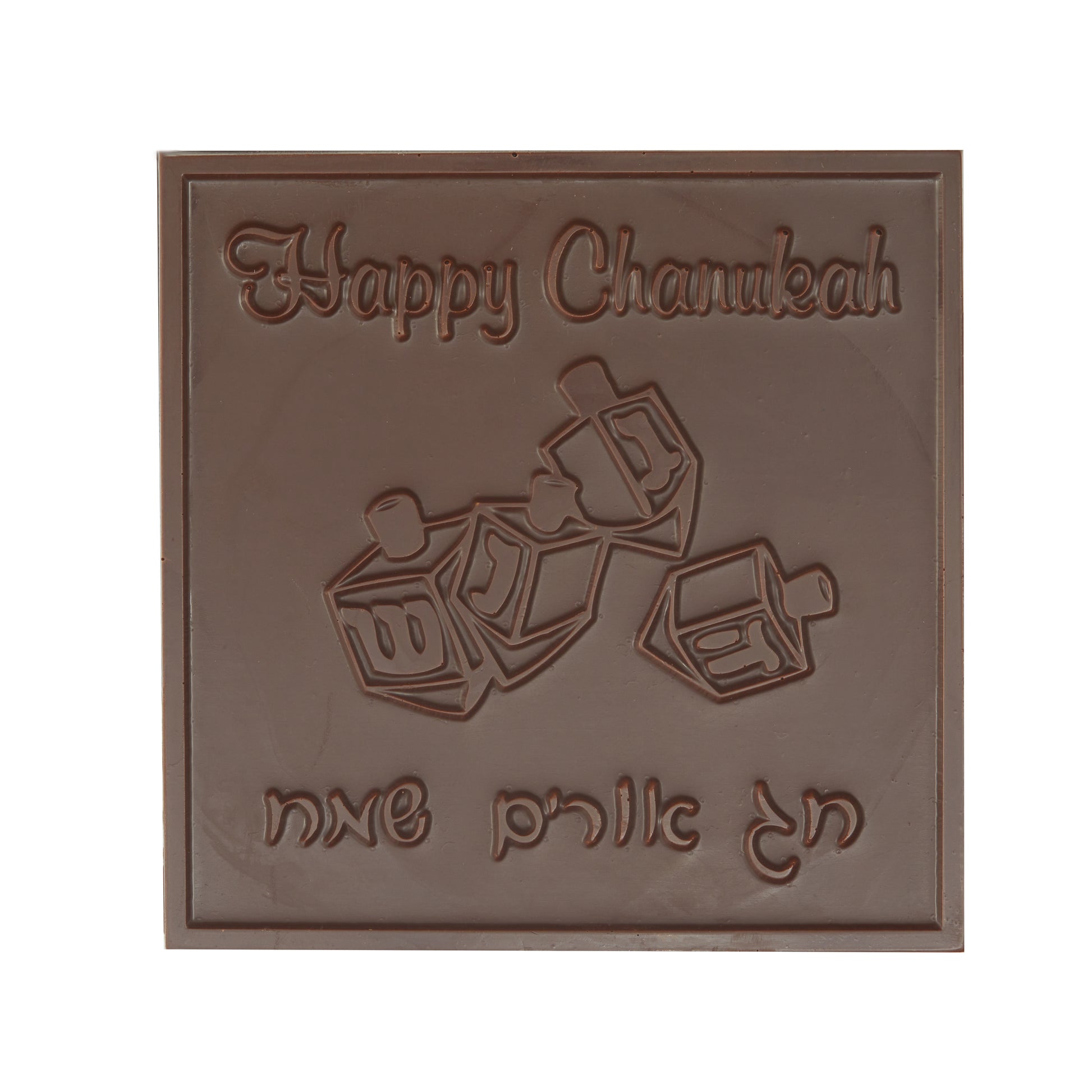 Celebrate the Festival of Lights with our special Hanukkah-Themed Belgian Chocolate Plaque. This beautifully crafted piece, available in decadent dark, velvety milk, and exquisite white chocolate, embodies the spirit of the season. Featuring intricate designs and symbols of Hanukkah, it's a delightful and luxurious treat that adds a touch of elegance to your holiday celebrations.