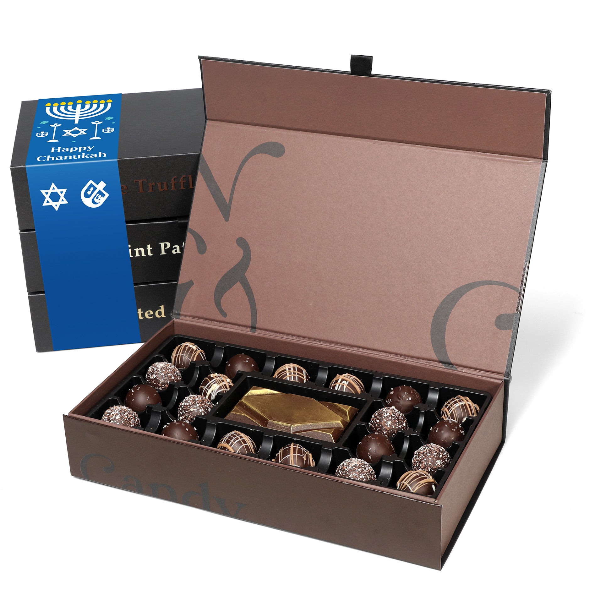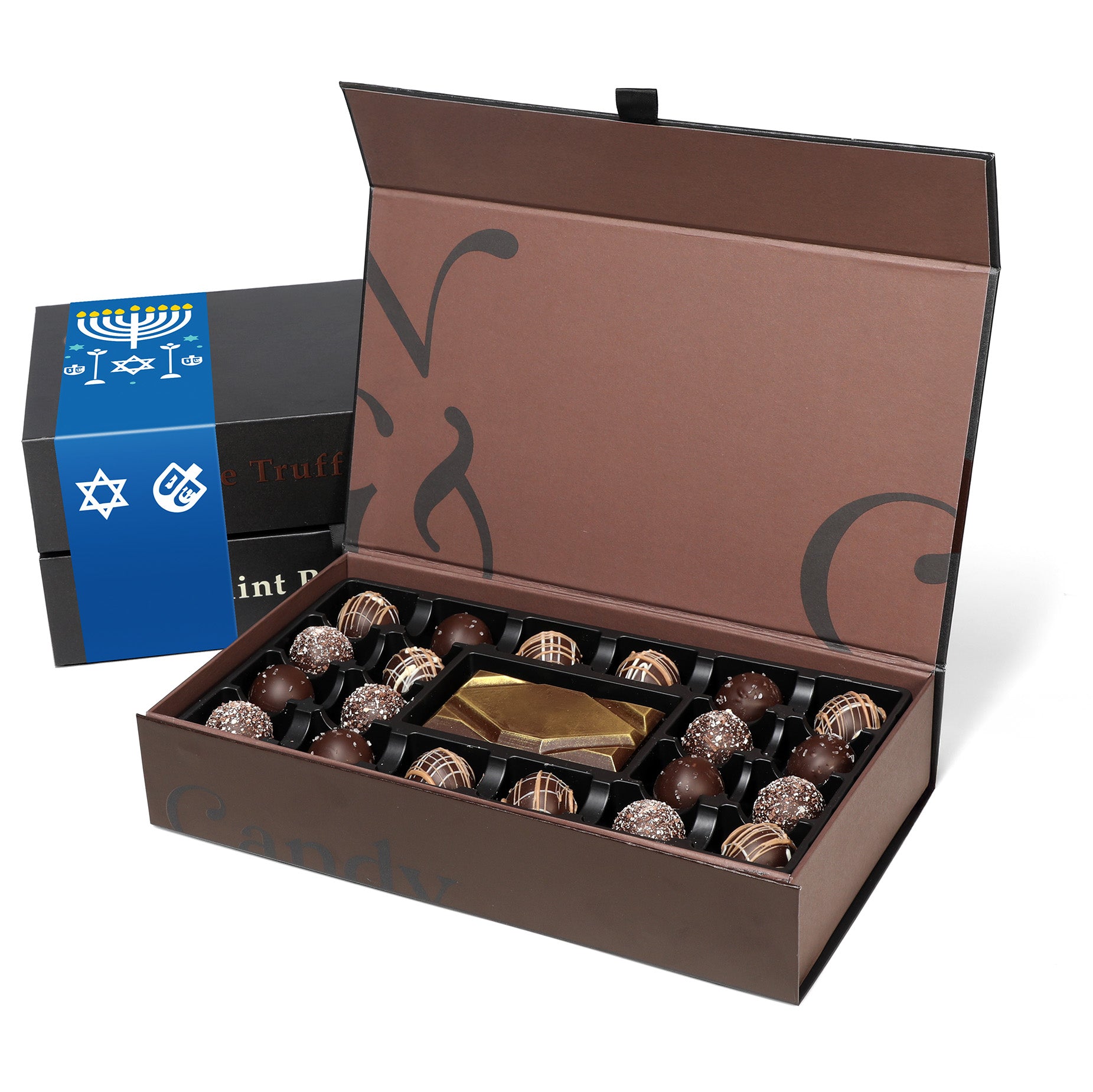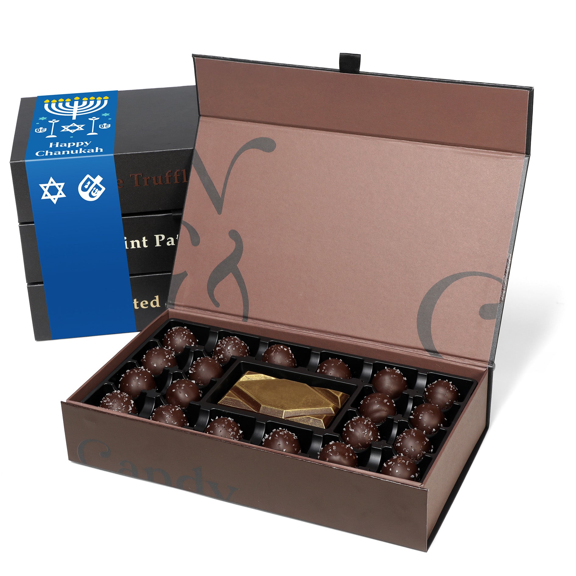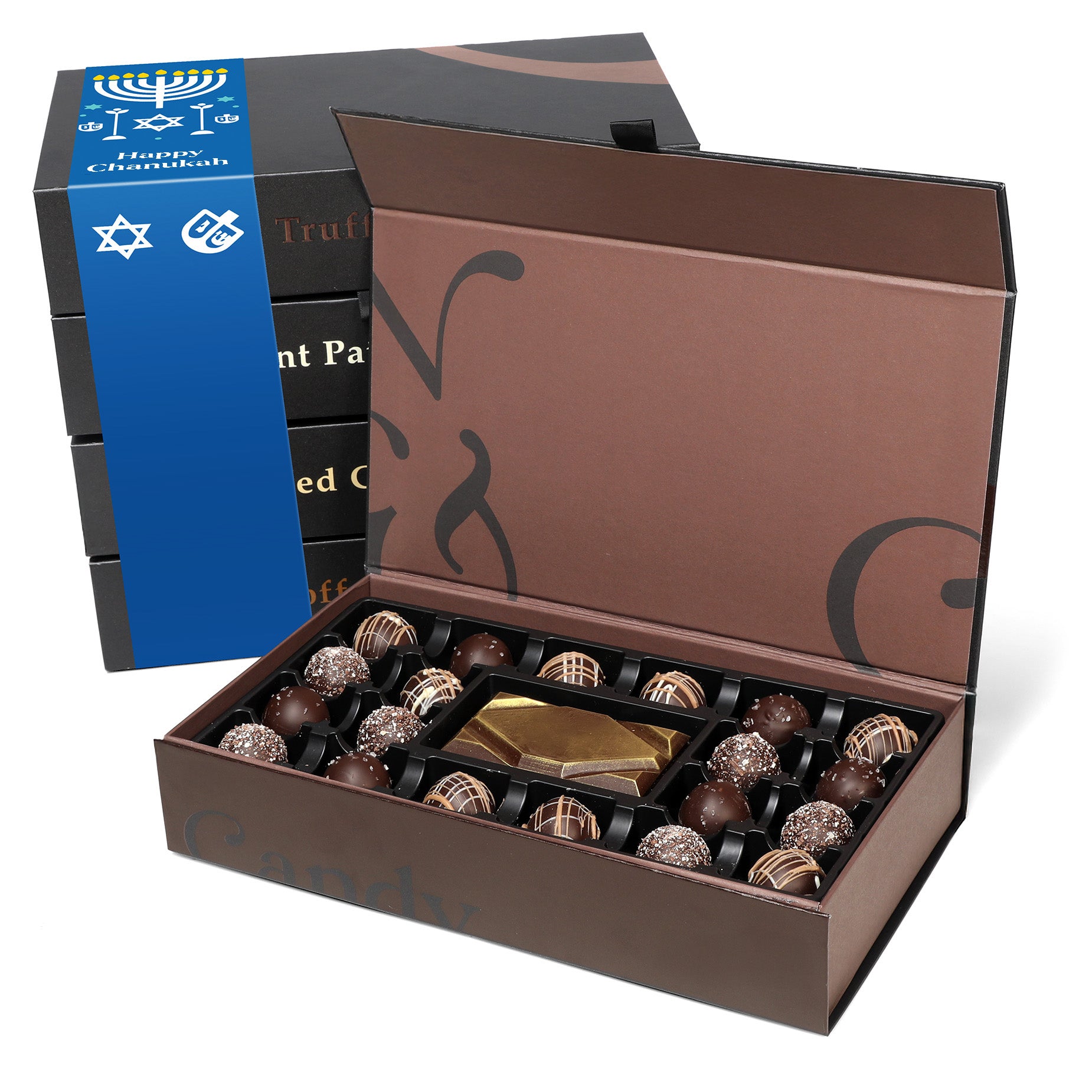 Celebrate Chanukah with NC Chocolatier’s signature line of small-batch confections specially packaged with Chanukah gift bands.