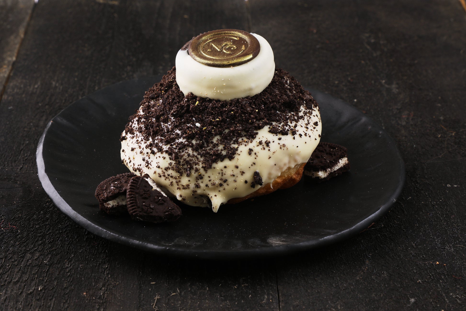 Succumb to the Oreo Obsession as you indulge in this delightful doughnut. It's a chocolate lover's fantasy, topped with white milk chocolate and generously sprinkled with crushed Oreo-style cookies. Crowned with an Oreo dipped in white milk chocolate, and filled with a luscious white chocolate cream, this doughnut is a delightful temptation that's hard to resist.