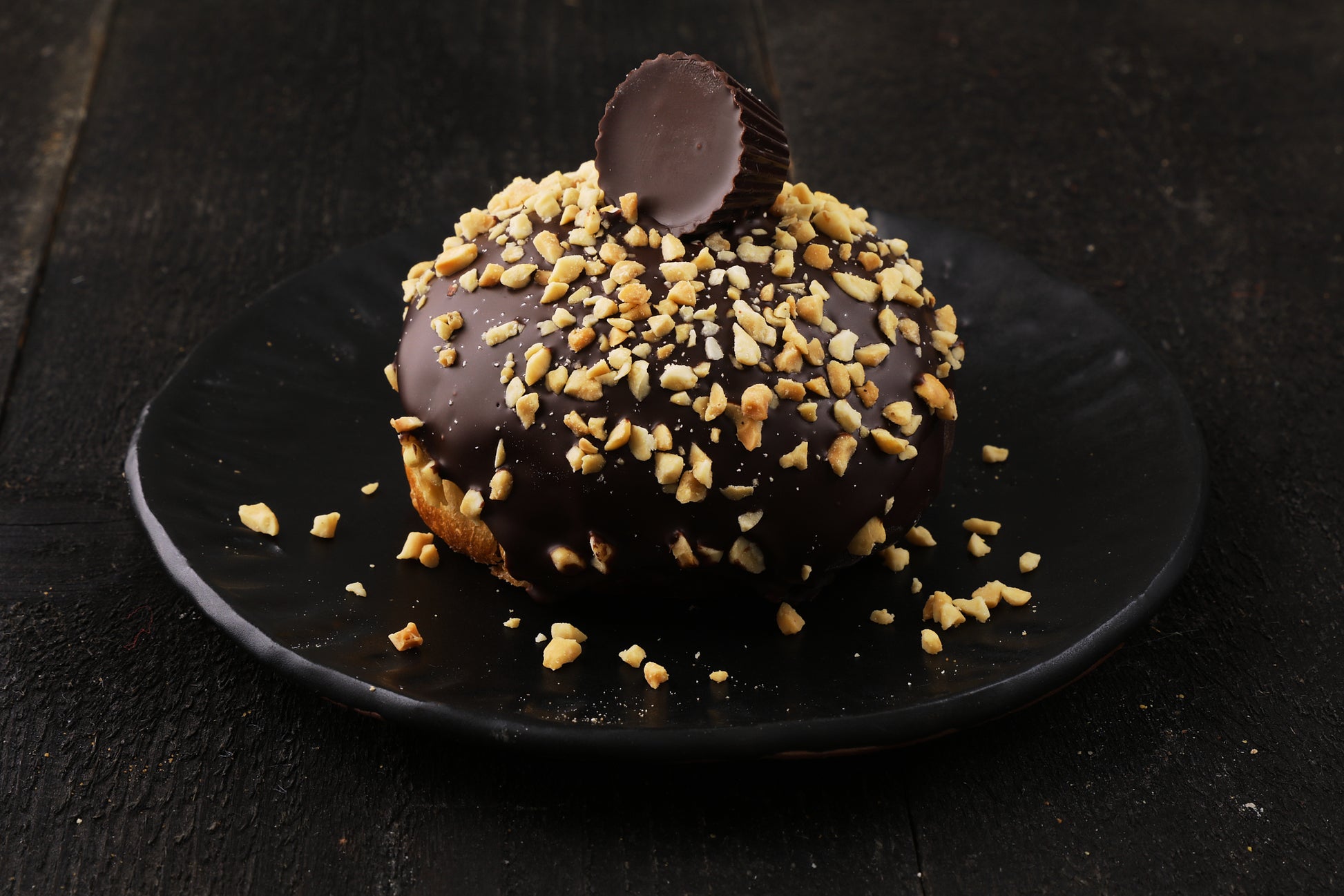 Experience pure passion for peanuts with our Peanut Butter Passion doughnut. It's a chocolate lover's dream, featuring a rich 100% dark Belgian chocolate coating, a sprinkling of toasted peanuts, a sumptuous peanut butter cup, and a creamy peanut butter filling that melts in your mouth. It's a symphony of nutty flavors that'll leave you craving more.