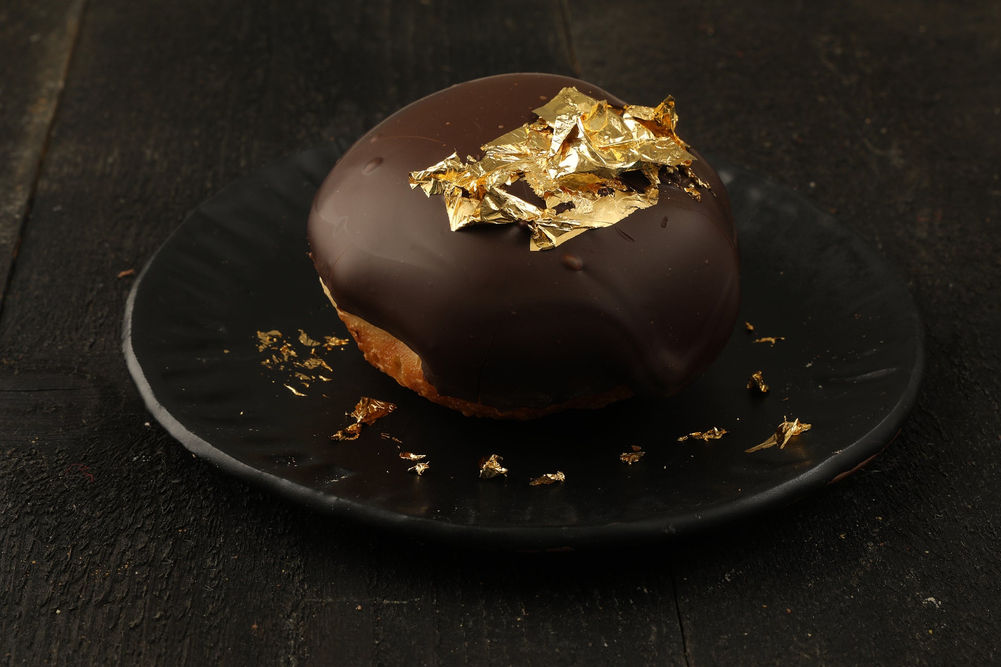 Elevate your taste experience with our Golden Chocolate Euphoria doughnut. Its opulent appearance is thanks to 100% dark Belgian chocolate adorned with real 24-karat edible gold, cradling a sumptuous chocolate ganache filling. Each bite is a luxurious journey through layers of decadence, making you feel like royalty.