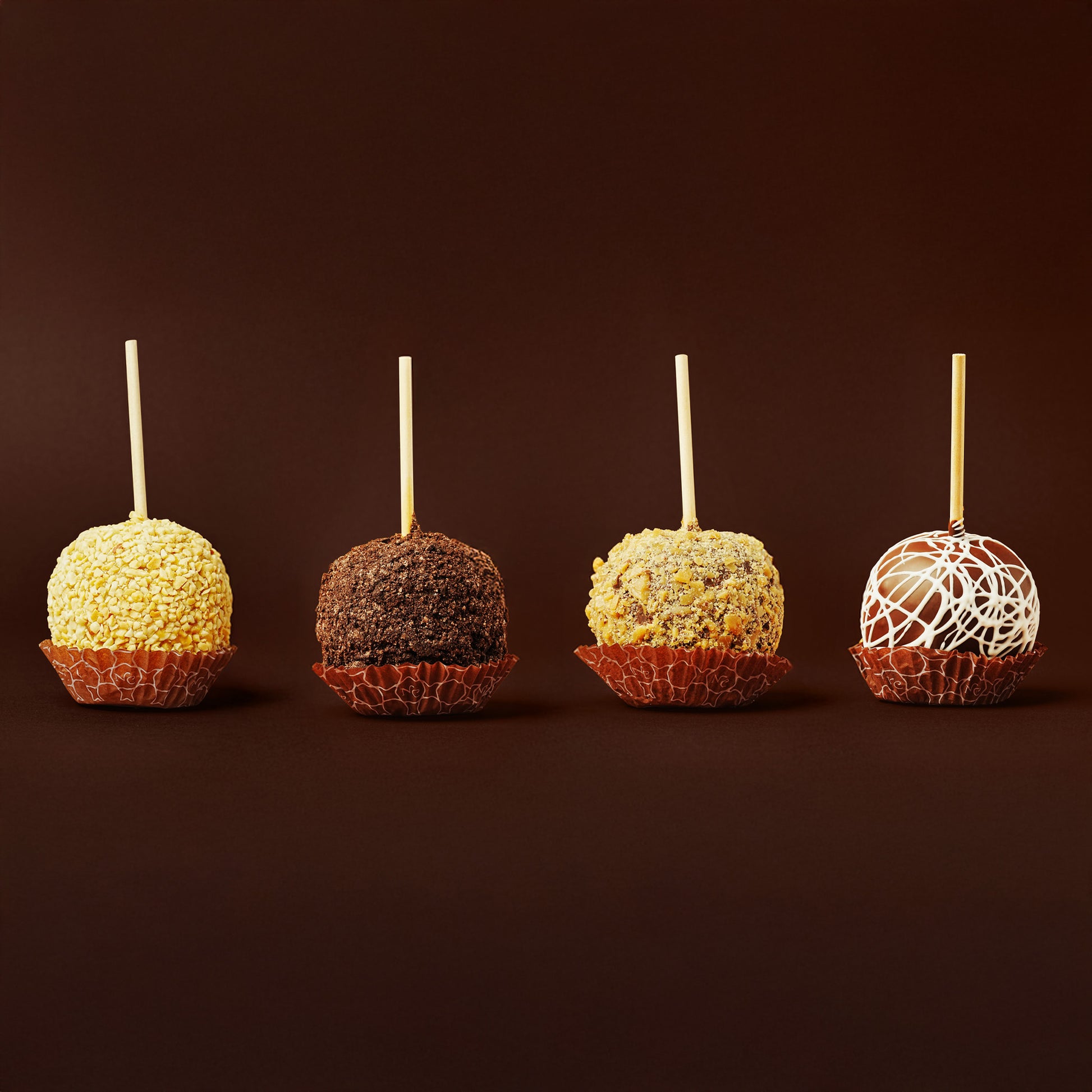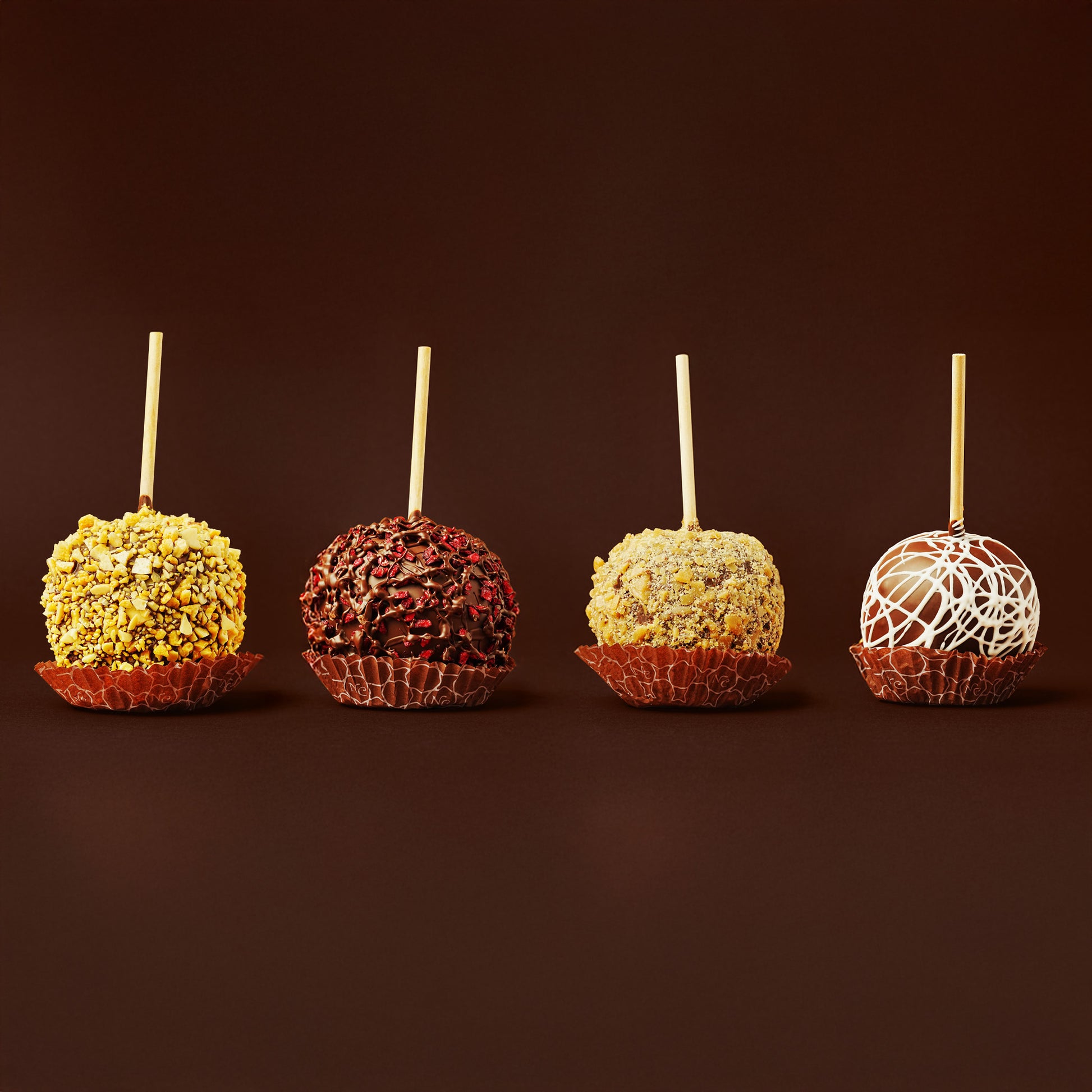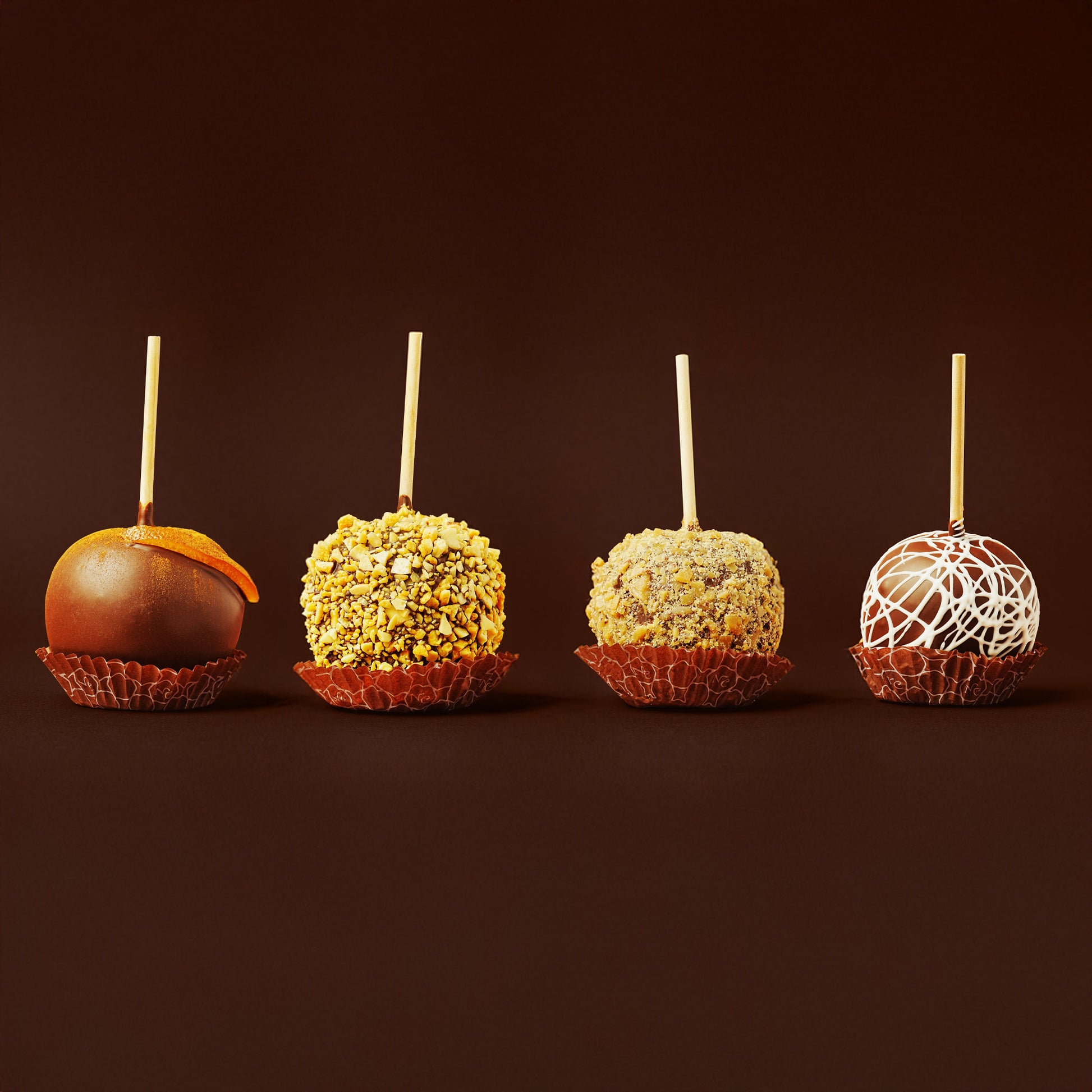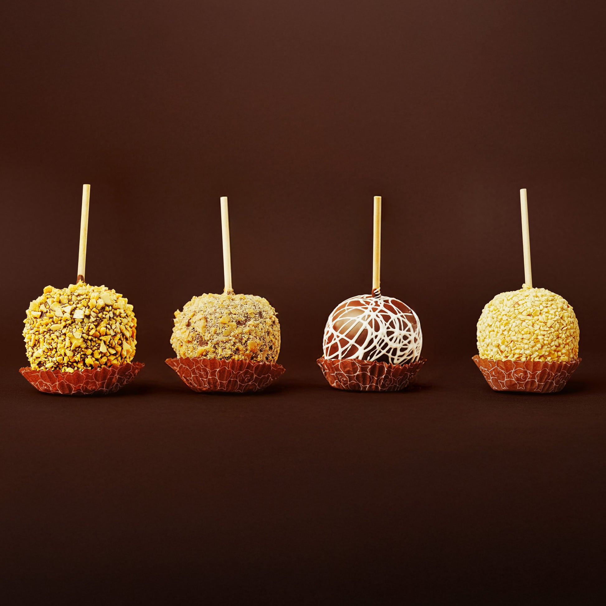 These aren’t the caramel apples from the fall fair. All four of these apples are dipped in slow-cooked caramel that coats. Each piece is hand-crafted and completely unique, with toppings and flavors that make a statement.