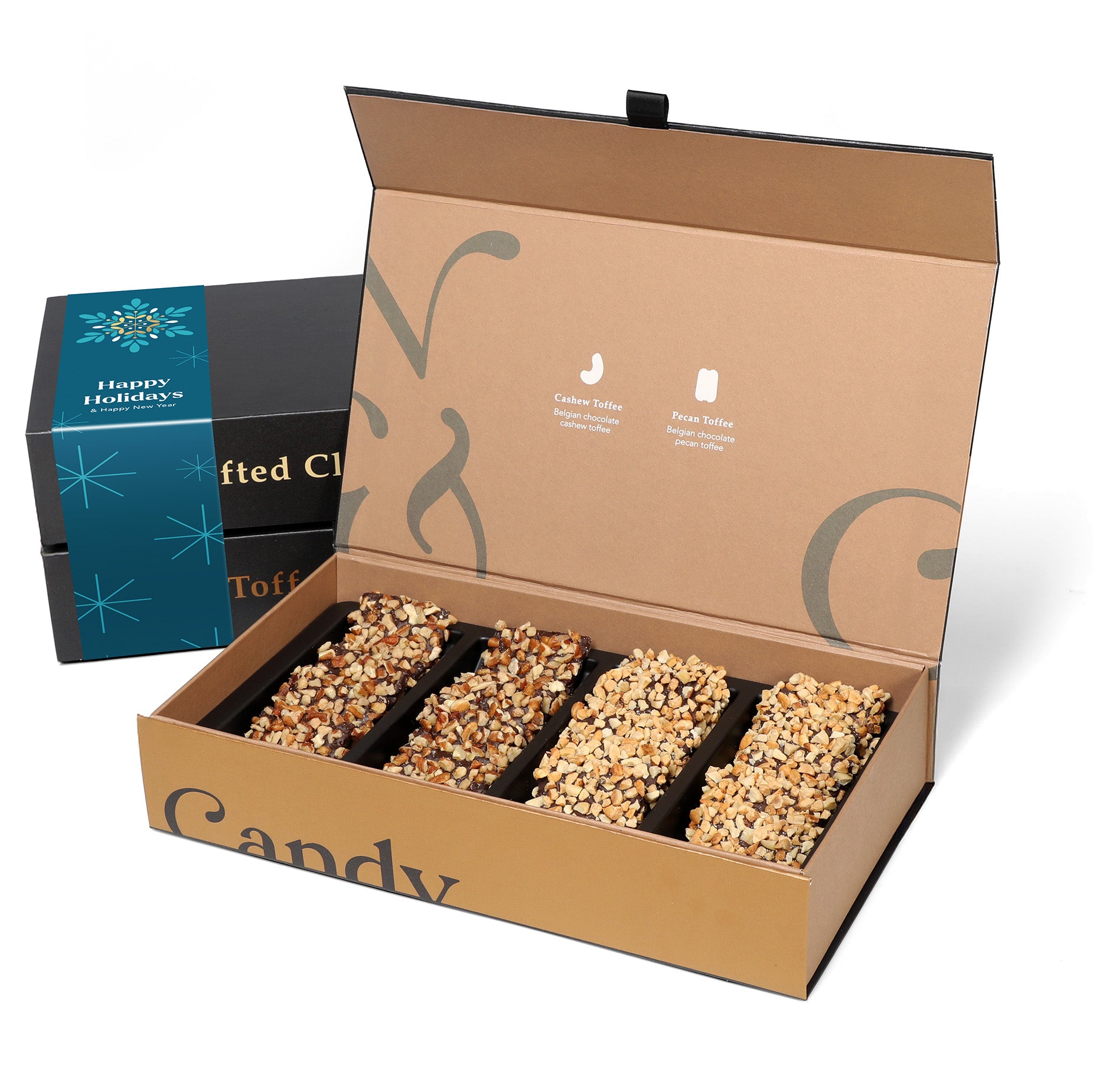 NC Chocolatier brings together the iconic tastes of some of our most popular treats with the premium presentation of our magnetic boxes. Our luxury gifts feature our refreshing peppermint patties, rich English Toffee, and assorted truffles with a customized chocolate business card. All gifting options are made with 100% Belgian chocolate, ensuring the best tasting experience.