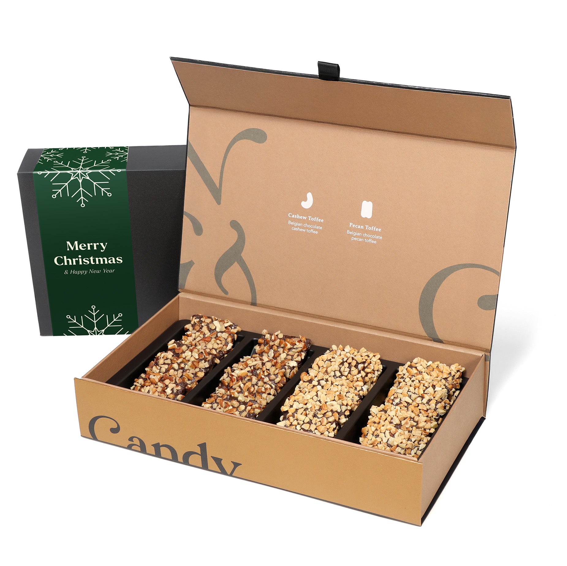 NC Chocolatier brings together the iconic tastes of some of our most popular treats with the premium presentation of our magnetic boxes. Our luxury gifts feature our refreshing peppermint patties, rich English Toffee, and assorted truffles with a customized chocolate business card. All gifting options are made with 100% Belgian chocolate, ensuring the best tasting experience.
