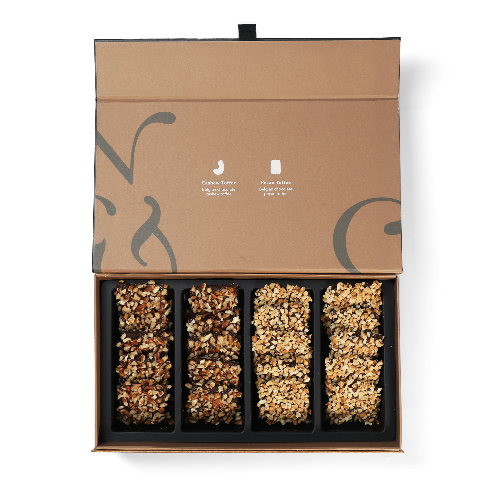 NC Chocolatier brings together the iconic tastes of some of our most popular treats with the premium presentation of our magnetic boxes. Our luxury gifts feature our refreshing peppermint patties, rich English Toffee, and assorted truffles with a customized chocolate business card. All gifting options are made with 100% Belgian chocolate, ensuring the best tasting experience.