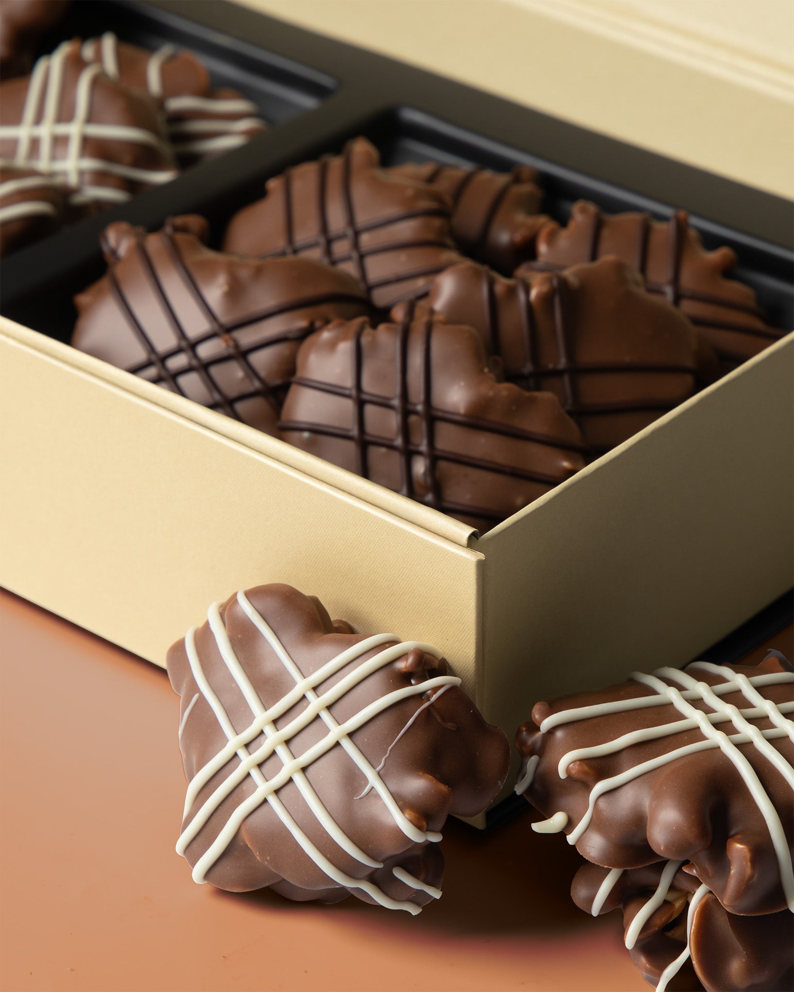 Golden caramel poured over roasted cashews and pecans, then enrobed in our limited-reserve milk chocolate crafted with real dairy. Salty, crunchy, creamy, chewy—the indulgent bite that is sure to satisfy.