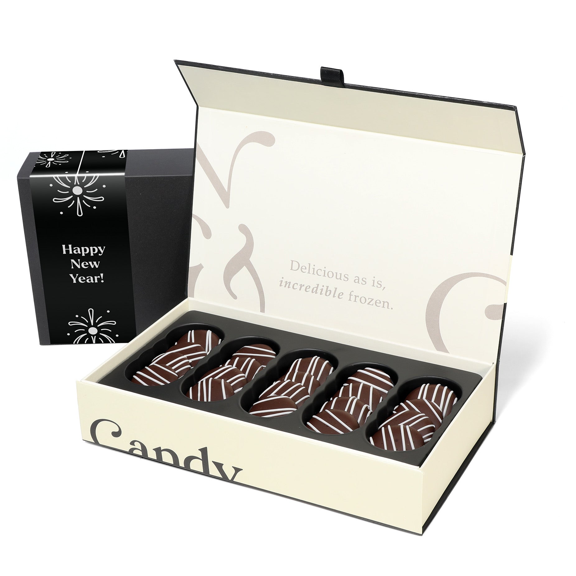 Celebrate the new year with NC Chocolatier’s signature line of small-batch confections specially packaged with "Happy New Year" gift bands.