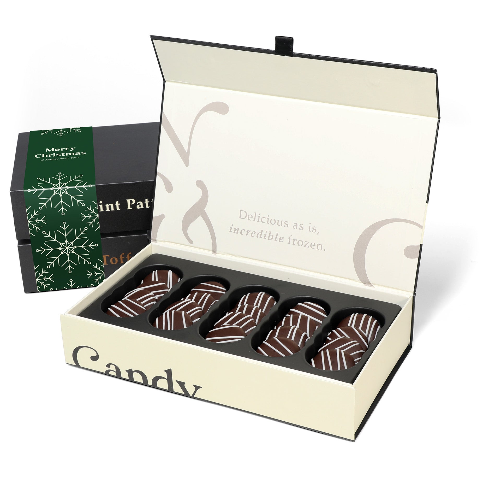 NC Chocolatier brings together the iconic tastes of some of our most popular treats with the premium presentation of our magnetic boxes. Our luxury gifts feature our refreshing peppermint patties, rich English Toffee, and assorted truffles with a customized chocolate business card. All gifting options are made with 100% Belgian chocolate, ensuring the best tasting experience.