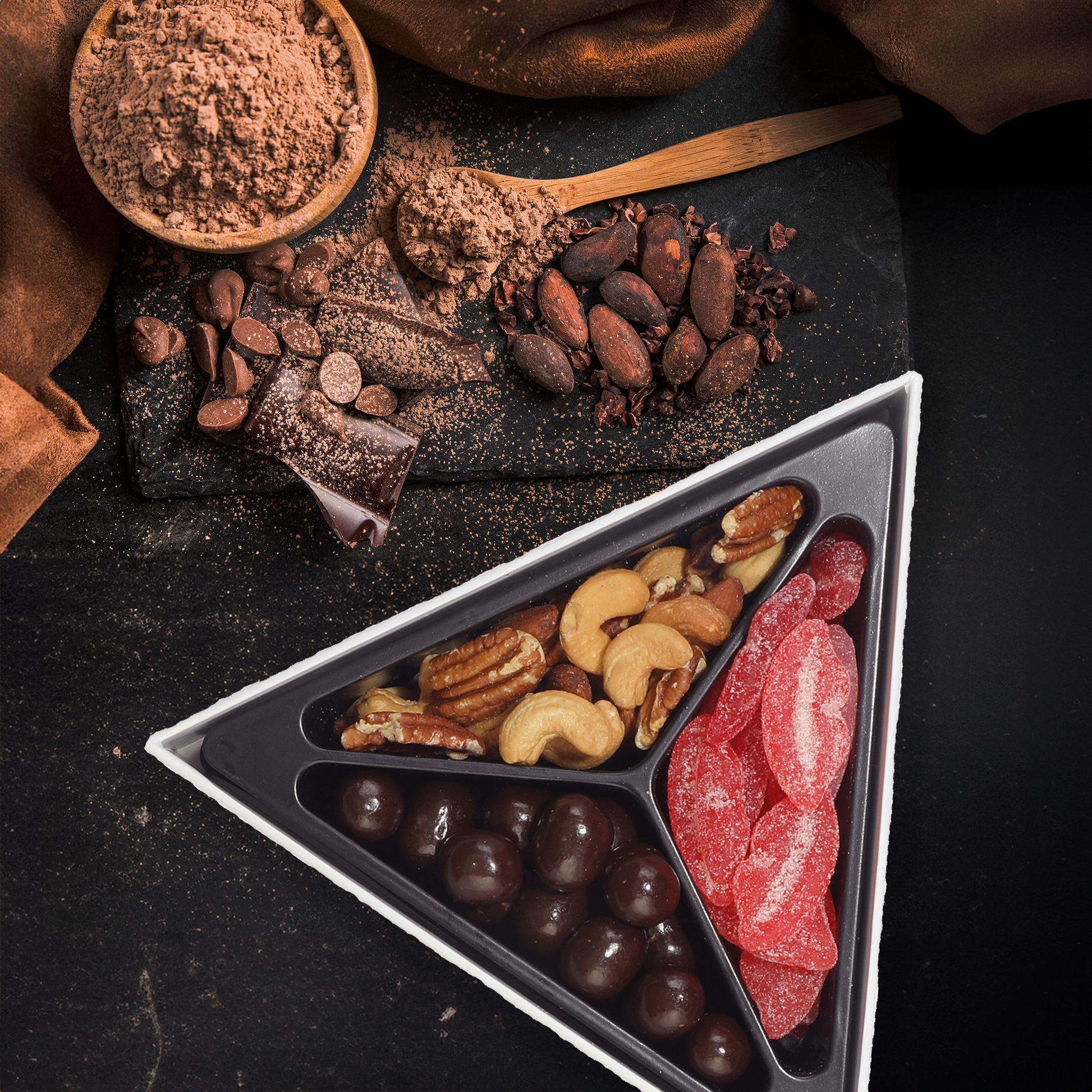 Dive into a world of tantalizing flavors with our exquisite collection, featuring the playful tang of Sour Lips, the indulgent richness of Chocolate Cookie Bites, and the sophisticated blend of Deluxe Mixed Nuts. Each element of this assortment is a celebration of textures and tastes, thoughtfully assembled to offer an unforgettable snacking experience.
