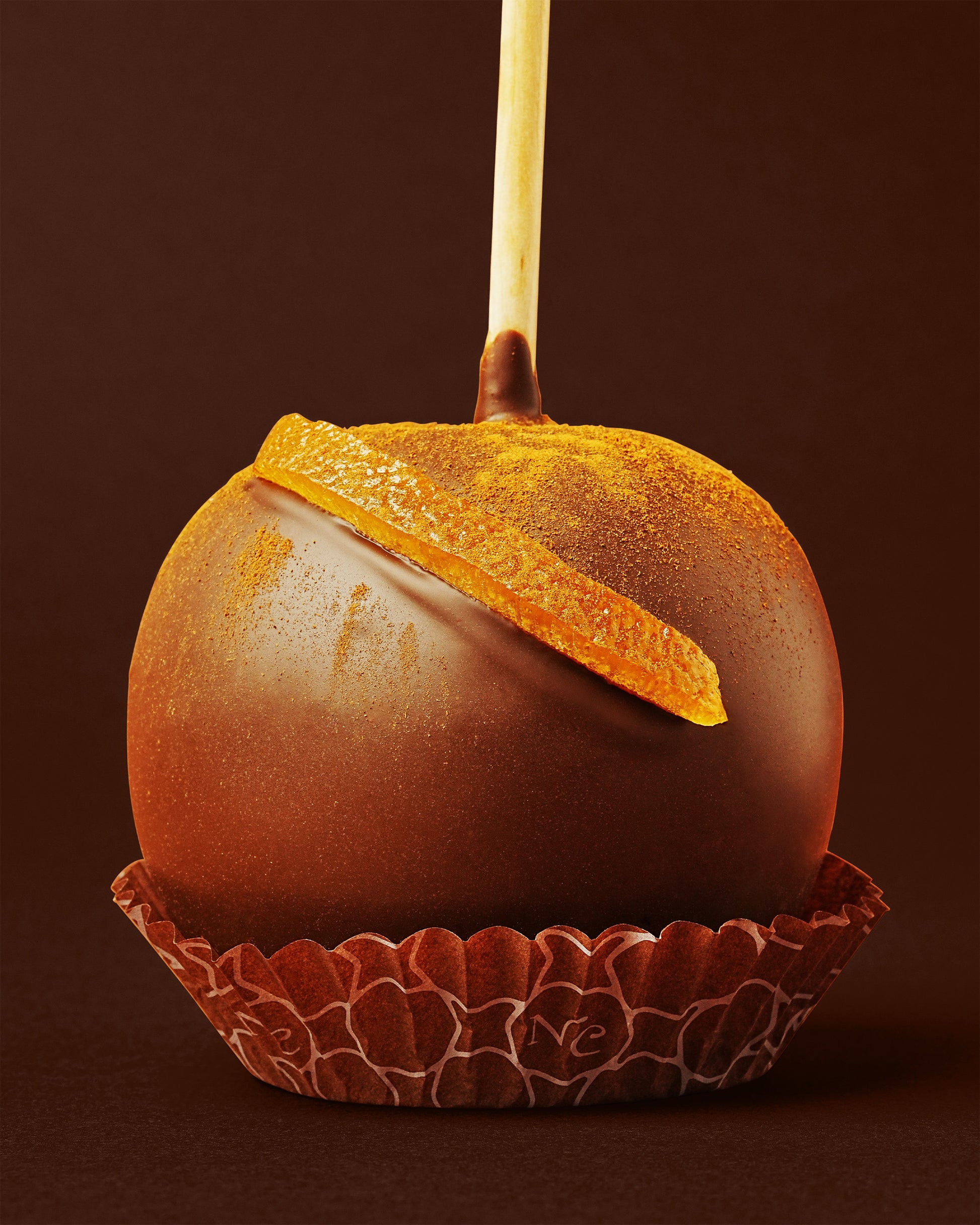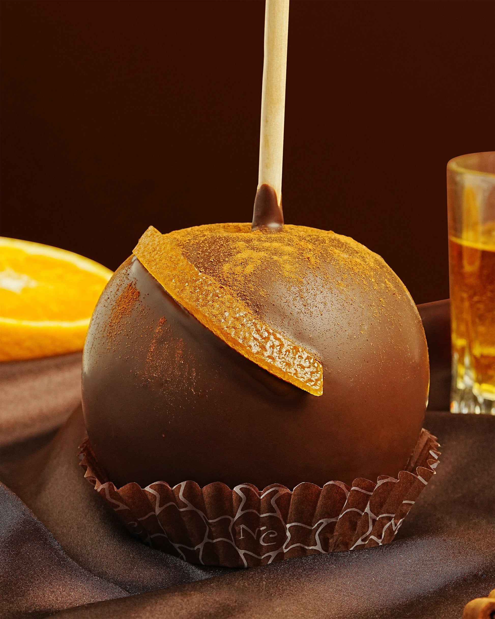 A Chicago-style apple, with slow-cooked caramel and a splash of KOVAL's single barrel whiskey. Dipped in dark chocolate, finished with candied orange peel. Smoky, citrusy, and just spirited enough to outshine every other apple for you. A Chicago-born original.