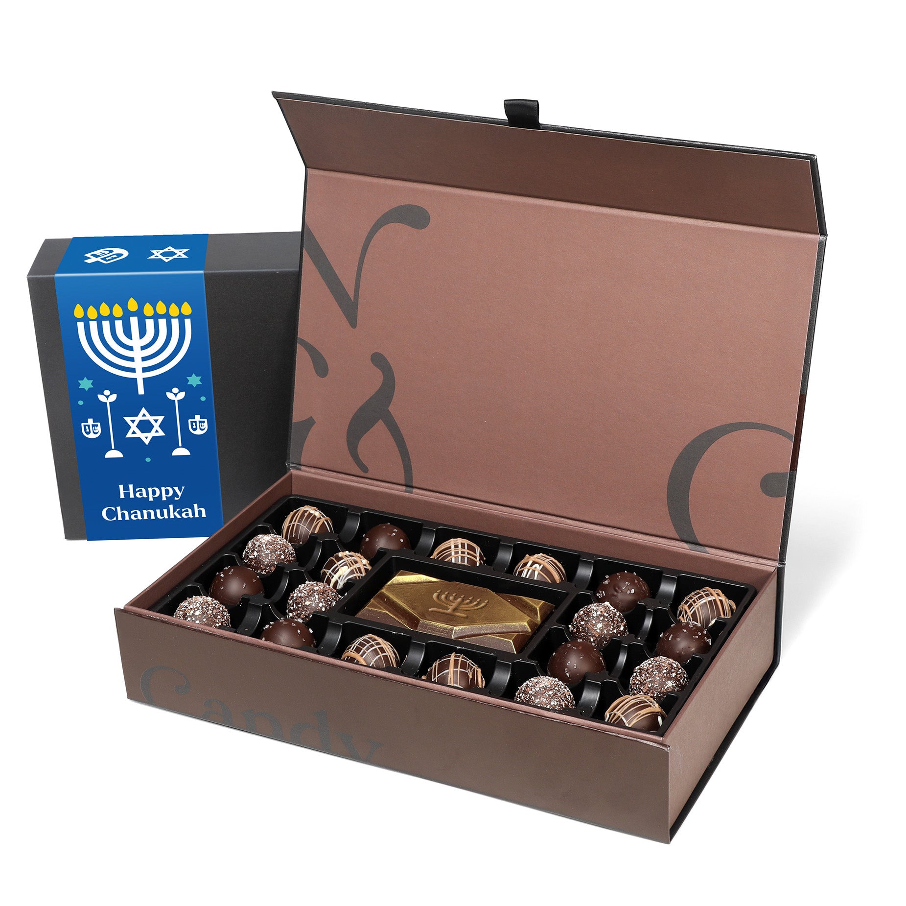 Celebrate Chanukah with NC Chocolatier’s signature line of small-batch confections specially packaged with "Chanukah" gift bands.